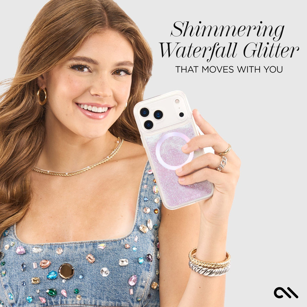 Shake me up! The Waterfall MagSafe Phone Case for the iPhone 17 Pro features eye-catching glitter that moves with you! We know how much you love your phone, so feel confident knowing it’s safe with 12-foot drop protection while strong, built-in magnets allow for easy MagSafe accessorizing and charging.