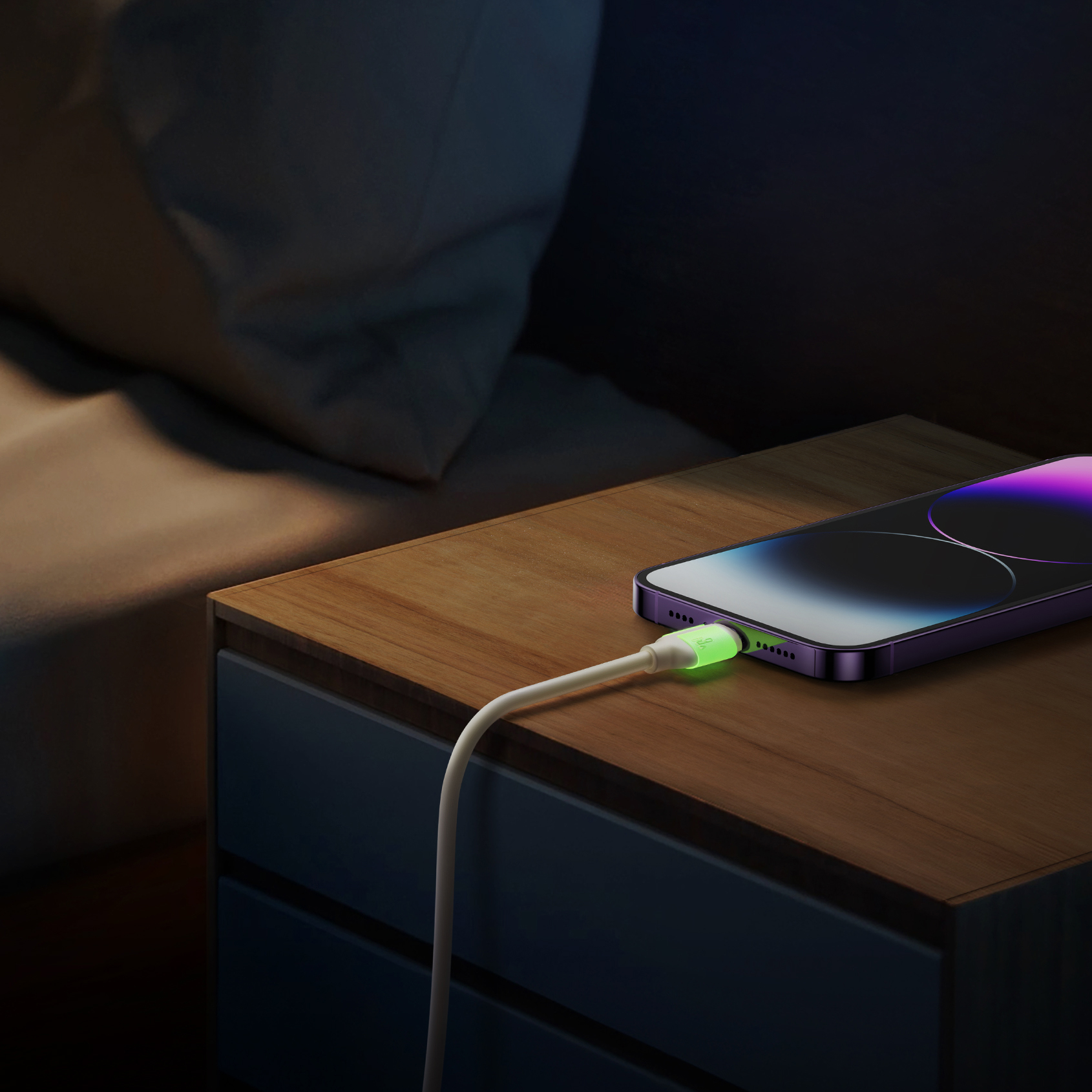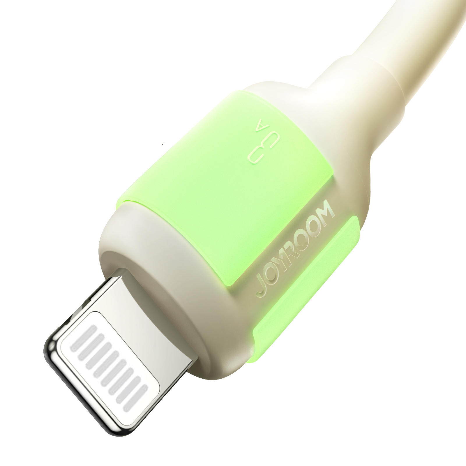 Charge your Apple devices with extended reach using the Joyroom S-A53 2m USB-A to Lightning cable, delivering up to 3A fast charging. Crafted with real liquid silicone, it’s soft, tangle-free, and ultra-durable. The fluorescent glowing connector lights up in the dark for easy nighttime use, while the anti-oxidation terminals and flame-retardant materials provide safety and longevity. With a 10,000+ bend lifespan, it’s perfect for home, office, or travel.