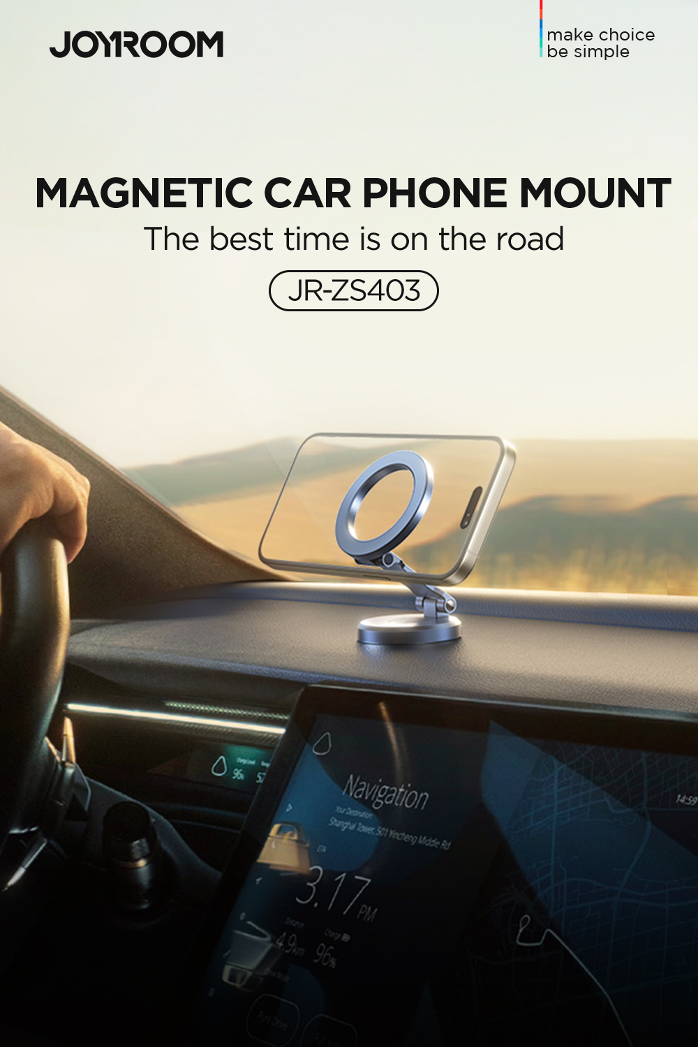 Keep your phone secure and your dashboard clutter-free with the Joyroom JR-ZS403 foldable magnetic mount. Featuring a 360° flexible rotating arm, upgraded anti-loosening axle, and strong nano 3M adhesive, it offers stable mounting even on bumpy roads. Easily fold it flat, semi-fold for horizontal view, or lift upright. Compatible with MagSafe phones and metal-ring-equipped devices, this compact mount also doubles as a hook—perfect for bags or cables.