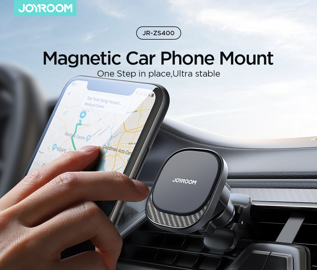 Stay hands-free and secure with the JR-ZS400 magnetic mount, designed for strong grip with a 3.5kg magnetic force and full 360° rotation. Compatible with all smartphones using the included metal plates, it attaches easily to any air vent for stable, adjustable viewing. Ideal for navigation and calls, this sleek mount combines power and flexibility for a safer drive. (Note: Metal plate use may interfere with MagSafe charging.)